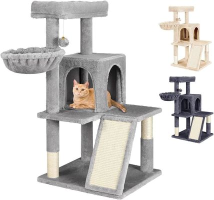 ライトグレーキャットツリーとトイキャットタワー コンドミネーション キャットハウスとパッダのプルーッシュ・パーチ 快適なハンマックとシサール
